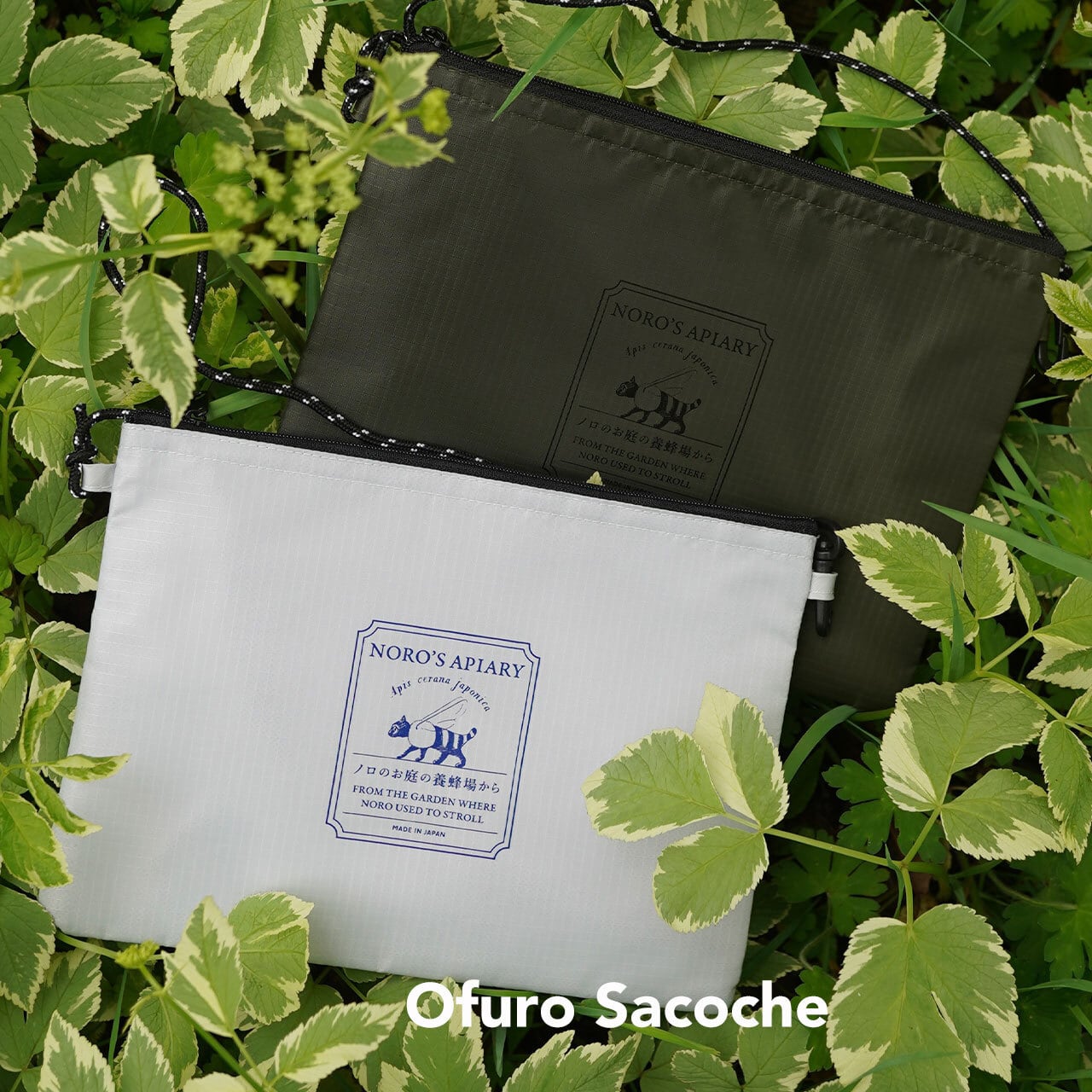 NORO’S APIARYのスキンケアが完成間近の頃、このセットを旅先の温泉やスパに持って行く時にサコッシュがあるといいなと思い、撥水加工の生地で作りました。