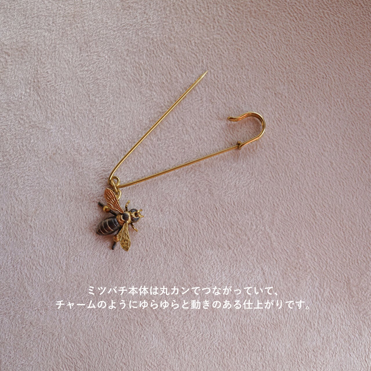 チャームポイントであるビーポーレン(後ろ脚の花粉玉)を付けた、かわいい働き蜂のジュエリーシリーズです。おうちの人(謙三)のミツバチ愛が高じて、なんとオリジナルで作ってもらいました。